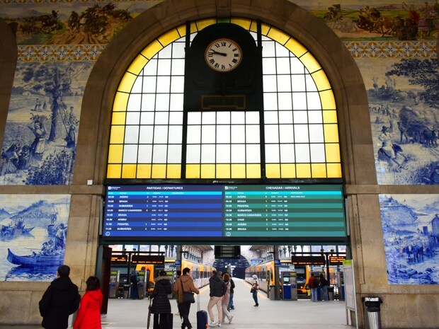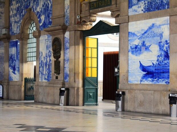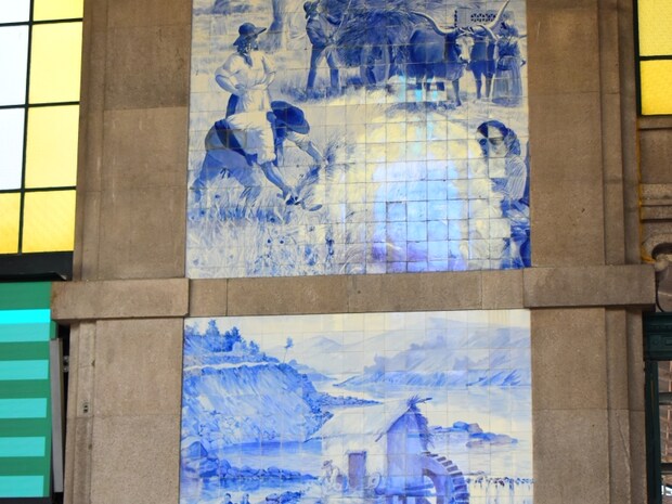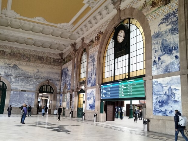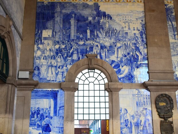 ポルト中心部に位置するサン・ベント駅は、1916年に開業し、フランスのボザール様式を取り入れた建築家ジョゼ・マルケシュ・ダ・シルバによる設計で建てられました。駅構内のアズレージョは、著名な画家ジョルジェ・コラソによって1905年から1930年にかけて制作され、完成までに11年を要した大作です。
