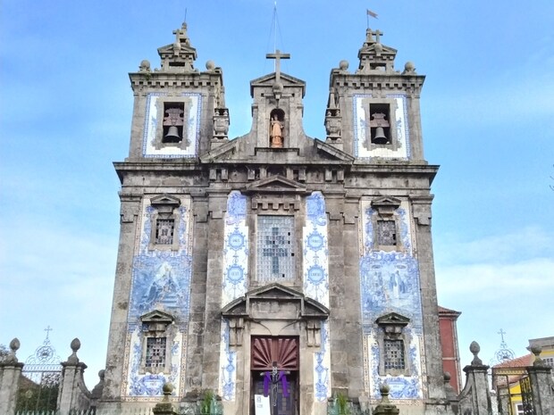 場所はポルト旧市街にあり、ポルト大学のすぐそば。教会自体はゴシックとロココ様式を融合した建築で、ファサードにはアズレージョは施されておりません。