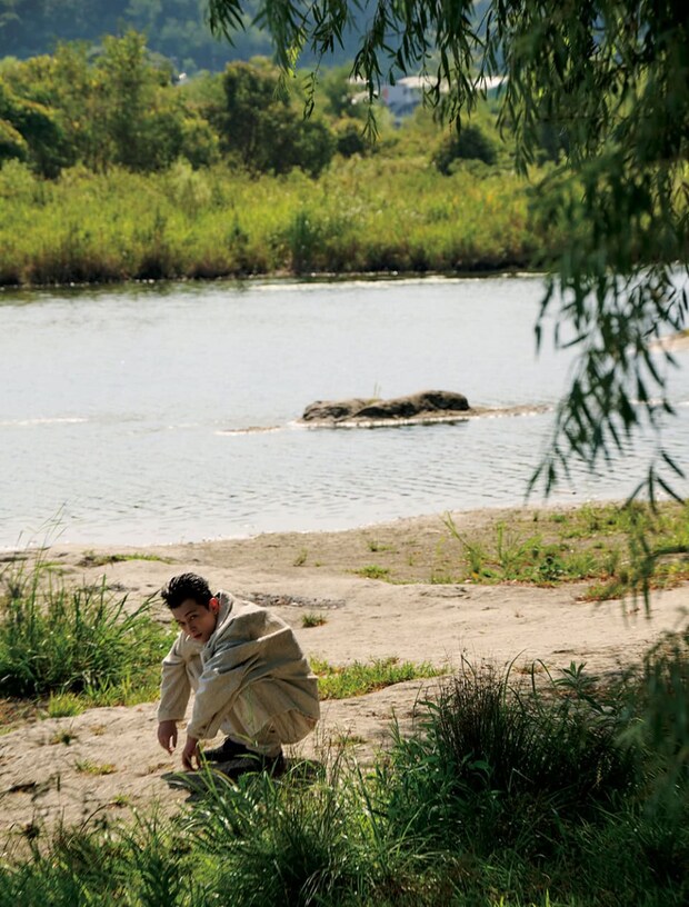 夏の終わりが近いなか、燦々と降り注ぐ太陽の光を背に始まった今回の撮影。「吉沢くんは本当は熱い感情を秘めていると思うんです」と話すUDAさんが、彼が幼少期に過ごした地で垣間見た素顔とは。