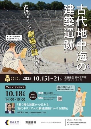 熊本大学は、熊本県内16店舗のTSUTAYAを運営するニューコ・ワンとの共同企画で、熊大まちなかキャンパス「古代地中海の建築遺跡~古代ギリシア劇場の謎に迫る!~」を10月15日(水)~21日(火)に開催する。会場は、蔦屋書店熊本三年坂 地下1階イベントスペースだ。