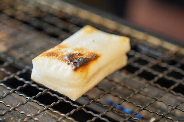 注文を受けてから焼き上げるお餅とのりの香ばしい組み合わせ。