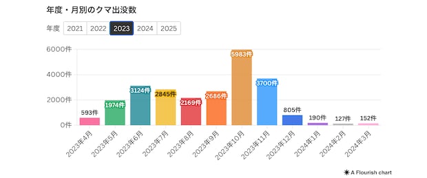 今、多数のクマが人里に出没している直接の原因は、どんぐりの凶作です。まだいくつかの県で発表してないのでわからないのですが、おそらく2023年に秋田県で起きたような複数種のどんぐりの凶作が起きて、クマの行動が変容した。特に岩手県と秋田県です。ただ、盛岡市の街中とか、市街地に出てくるクマが非常に多く、その様子が落ち着いているところが、今までにはなかった気がします。