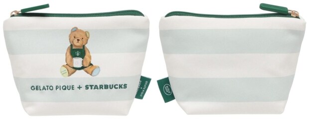 コンパクトなサイズ感のポーチ。ジェラートピケらしいミントグリーンの2色ボーダーに、コラボ仕様の「ピケベア」をプリントし、コラボロゴを刺繍で施した。税込4,800円。