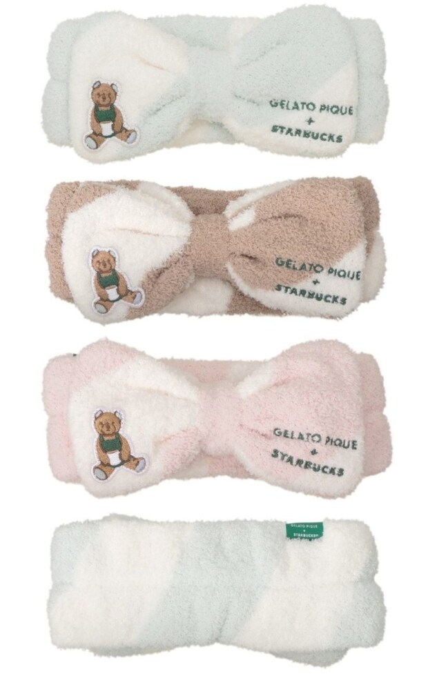 リボン型が特徴のもこもこ素材のヘアバンド。カラーバリエーションは3種。コラボロゴの刺繍や、コラボ仕様のピケベアのアップリケ刺繍を施した。各税込4,200円。