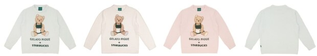 もこもこ素材のゆったりとしたプルオーバー。カラーバリエーションは3種。グリーンエプロンを着てマグカップを持ったコラボレーション仕様のピケベアと、コラボレーションロゴをジャカードで前面に大きく施した。各税込10,500円。