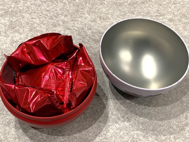 先ほどのスノードームと同様、おしゃれな缶なのでお部屋のインテリアにもぴったり!飾るだけで絵になるデザイン缶ですよ♪