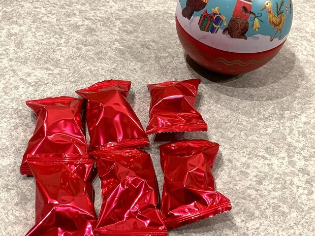 アドベントカレンダーなので、試しに1日の小さな扉を開けてみました。すると、中から小さなお菓子の小袋が!