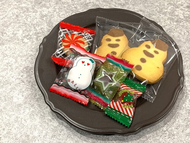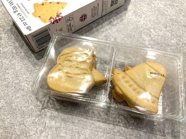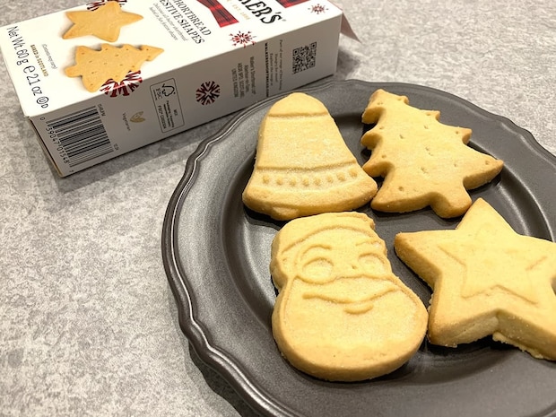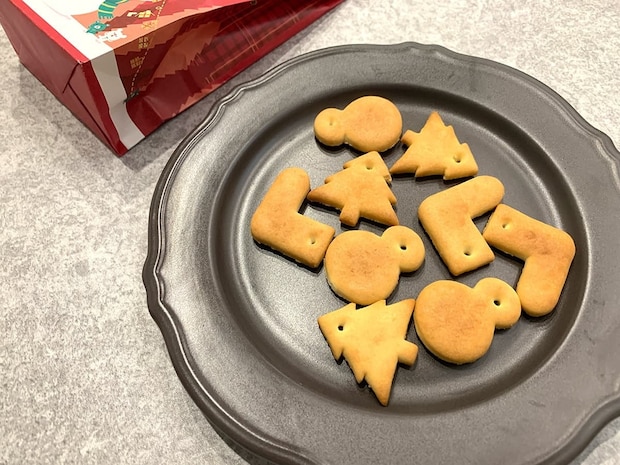 ビスケットの形状も特徴的で、クリスマスツリー・雪だるま・靴下のフォルムで作られています。お皿に並べるだけでも季節感があふれますよ♪