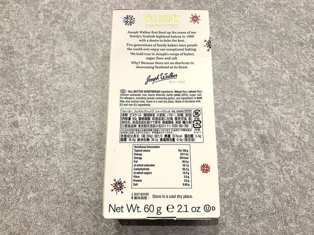 イギリス原産のクッキーを4枚詰め合わせた一品。ウォーカーの商品としては、他にも大容量のショートブレッドやタルトなども売られていたので、予算・好みに合わせてお菓子を選べるのも魅力です♪