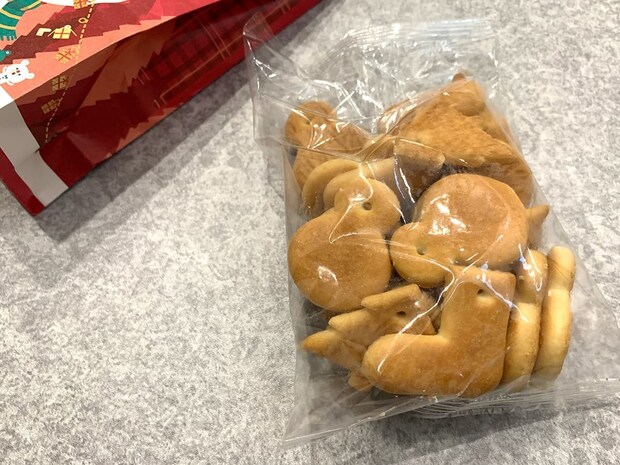 商品を開封すると、ビスケットがたっぷり詰まった袋が入っていました♪約40gのビスケットで、複数人でシェアするには十分な量です!