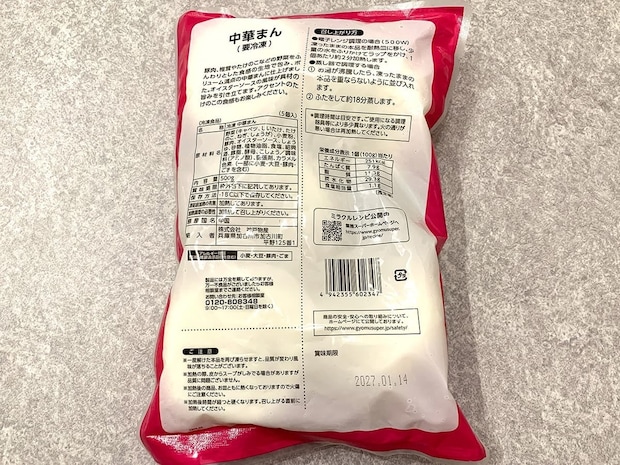 100gの中華まんが5個入って価格は570円(税込)。1個あたり114円で、比較的リーズナブルな商品となっています。