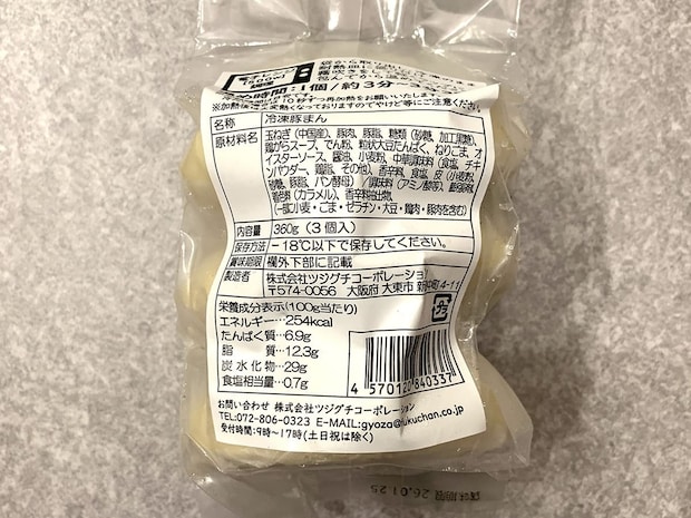 カロリーは100g1個あたり251kcal。コンビニの肉まんのカロリーが200kcal強なので、標準的~やや高めの数値といったところでしょうか。