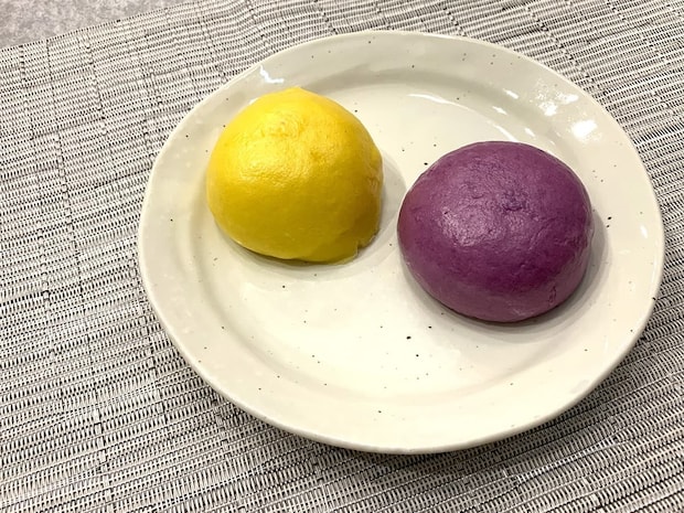 お肉系の中華まんから少し離れ、紫芋とカボチャを使用した「紫芋まんカボチャまん」をご紹介します。