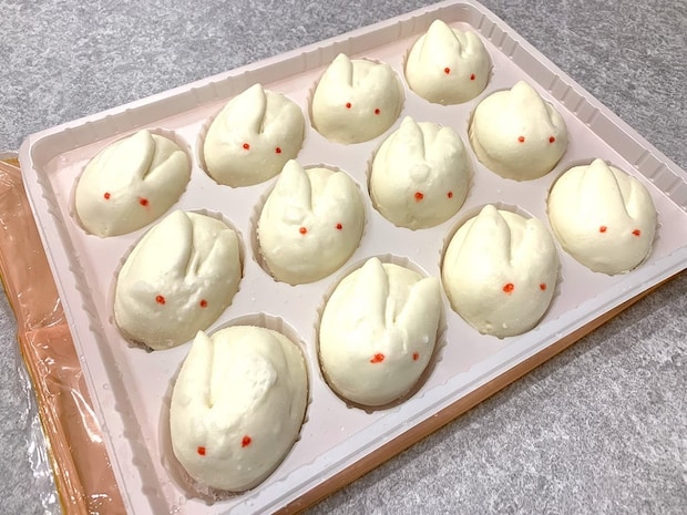 整然と並べられた愛らしいうさぎ型の中華まん「メイちゃんのうさぎまん」をご紹介します。