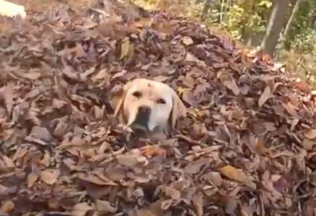 相当、落ち葉の山が嬉しいんだね。