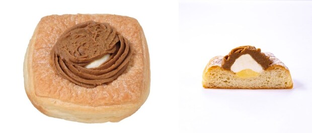 しっとりと歯切れのよいデニッシュ生地に、なめらかな栗のクリーム・ホイップクリーム・カスタードクリームの3種のクリームを絞ったスイーツ仕立ての菓子パン。