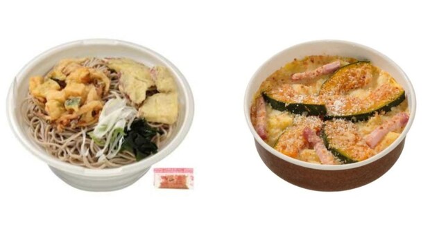 セブン‐イレブン「かぼちゃ入りかき揚げとさつまいも天そば」「かぼちゃのクリームグラタン」