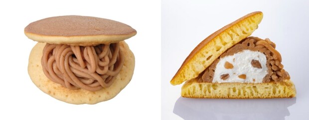 ふわもち食感のどら焼生地で、イタリア栗使用のマロンクリームとマロンダイス入りのホイップクリームを挟んだ。芳醇なラム酒を加え、栗の風味を最大限に引き出している。