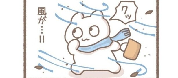 家を出た瞬間、強風が。これは風が「仕事に行くな」と言っているに違いない…!/毎日がんばってはたらく、えらい