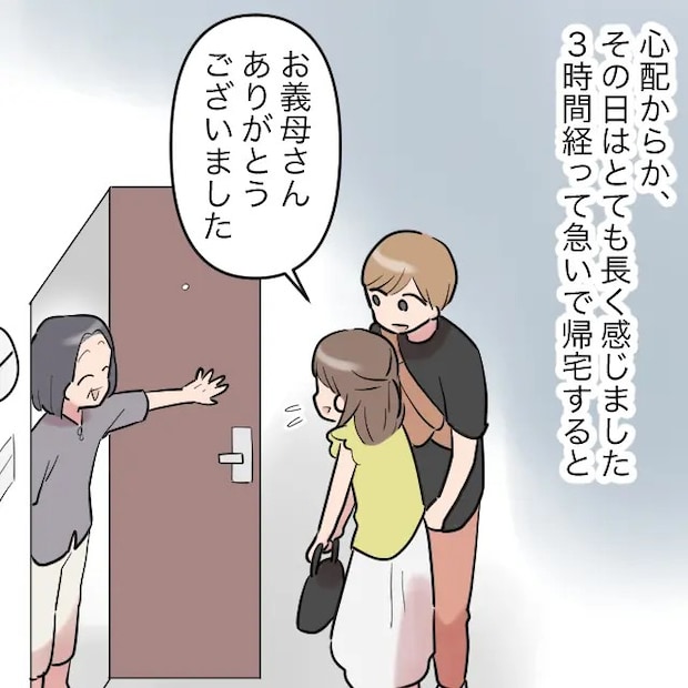 心配ばかりしていたせいか、その日はとても長く感じました。それから3時間が経った頃急いで帰宅。