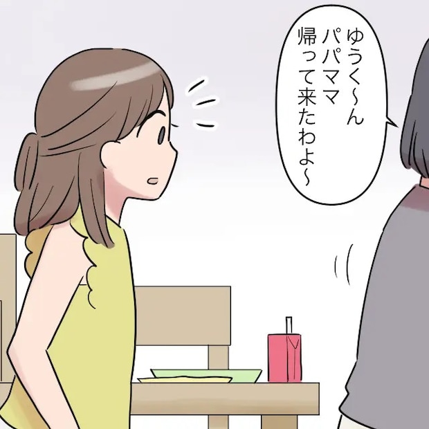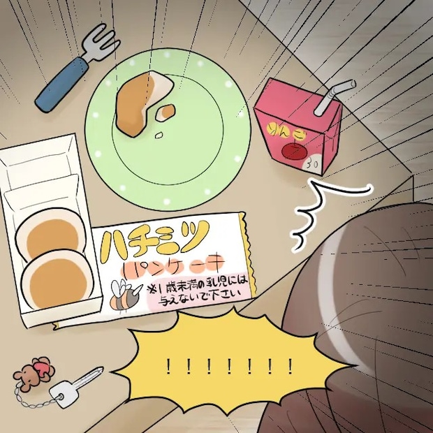 そしてやって来た義母の誕生日当日。約束したとはいえ、不安でいっぱいのユリさんは、ゆうくんが心配で気もそぞろ。3時間が恐ろしく長く感じられ、急いで家に帰りました。「ゆうく~ん、パパママ帰って来たわよ~」と言う義母の後をついて歩きながら、何気なくテーブルの上を見たユリさんは、「ハチミツパンケーキ」とパッケージに書かれたおやつを見て絶句。驚きすぎて声が出ない状況、想像するだけで悪寒が走りますね。