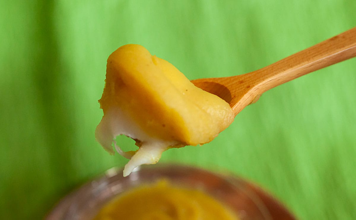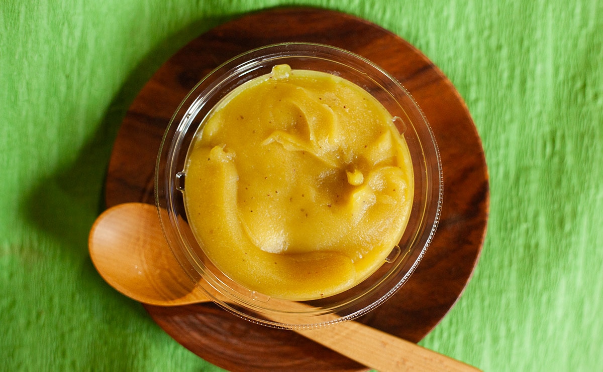 このスイーツの主役は、やわらかく、歯切れのよいお団子。ではなく、その名のとおり芋あん。風味豊かで、ねっとりとした食感が特長のようです。
