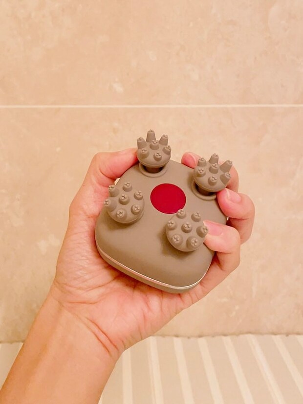 最後にご紹介するのは、バスタイムに欠かせない頭皮ケアギア。スカルプD ボーテの新ヘッドスパブラシは、まるで指で揉みほぐされているような心地よさで、首や肩まわりにも使える優れものです。これまでも似たギアはありましたが、大きくて握りづらかったり、重たかったりetc. その点こちらは、手の平にすっぽり収まるサイズ感と172gという軽さで、片手でも扱いやすいのがいい! 防水仕様なので、湯船に浸かりながら生え際から頭頂部へすべらせてグイグイ、耳の後ろや肩の凝りを押し流してグイグイ、思いきり使えます。人間工学に基づいたブラシが、絶妙な刺激でコリをほぐしてくれる感じがクセになります。シャンプー時に使えば、頭皮や毛穴の詰まりをすっきり洗い流せて、目もぱちっと冴えるような感覚が。すっかり長風呂の相棒です。