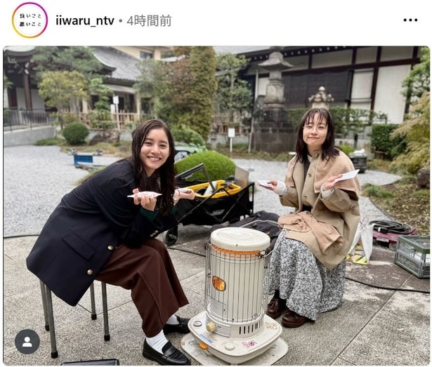 この日、公式Instagramは「あの雨のシーンにて 肌寒い日だったのでストーブで暖を取るお二人」などのコメントとともに写真を投稿。新木と藤間がストーブを囲んで温まりながらカメラに笑顔を向けるオフショットを公開。