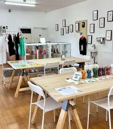 元食堂を「gallery ca:temporary」(イートインのできるギャラリー)、3畳1間の部屋が33室並ぶ寮棟を「33言動」(ショップ&スタジオ)、
