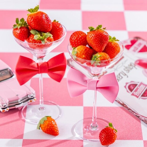 さらに、口直しにもぴったりな「スモークダックのコブサラダ」、爽やかなヨーグルトフレーバーの「ストロベリーシェイク」に加え、グラスいっぱいのフレッシュストロベリーも用意。