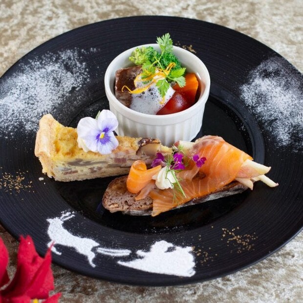 クリスマスのご馳走を思わせる華やかなセイボリーも