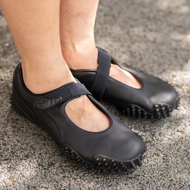 足元は辛口デザインな『プーマ』のメリージェーンスニーカーをオン! 旬なバレエコアスタイルを気軽に楽しめるアイテム。