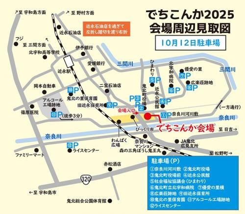 11日、12日は臨時の駐車場もありますが、台数に限りがあるため、なるべく乗り合わせでご来場ください。