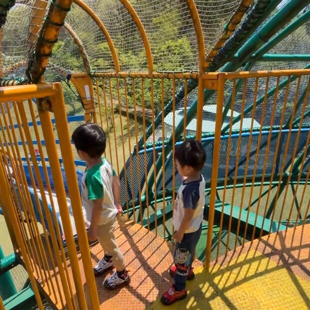 高さがあるのでちょっと怖いかもしれませんが、ローラーすべり台のまわりにはネットがはってあり、