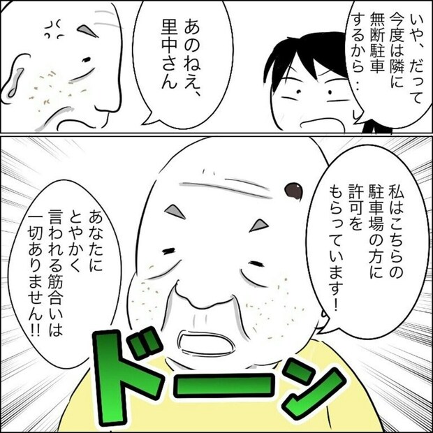 一筋縄ではいかない隣人に駐車をやめさせるべく、Aiさんはこのあと夫と協力して無断使用された住人について調べ、再び無断駐車をする隣人宅へ出向きます。