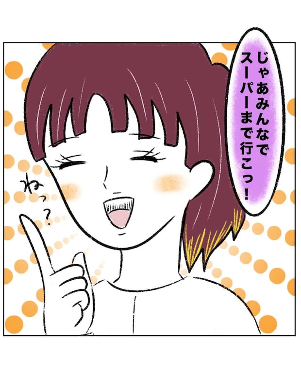 つーくんママが「じゃあみんなでスーパーまで行こっ!」と提案。