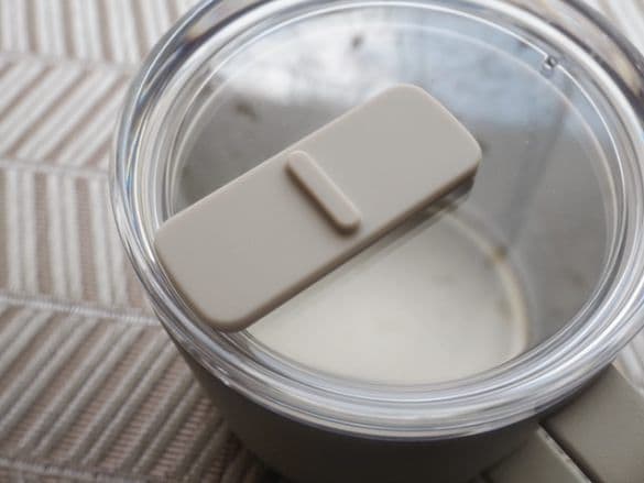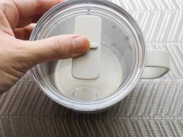 飲み口は約2cm×1cm(独自に計測)で、傾けた時に飲み物がドバッと出てこないちょうどいい広さ。