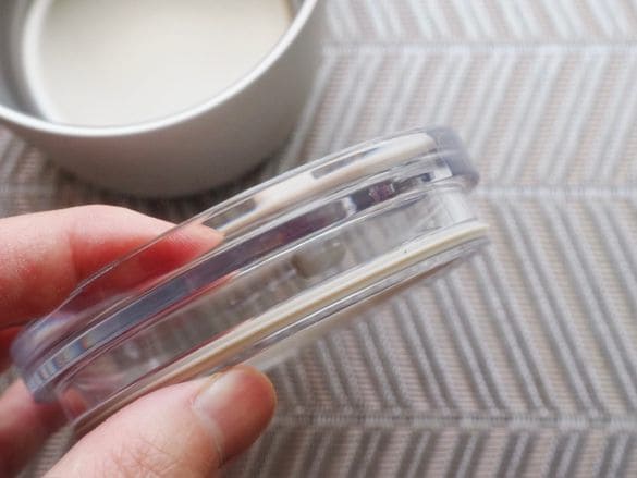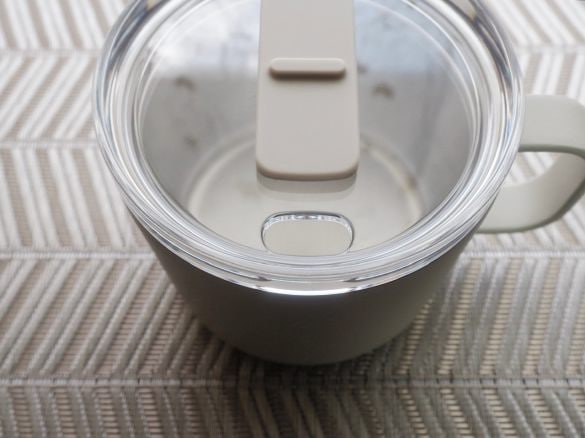 250mlの「目盛り付き 保温保冷 蓋付きマグカップ」の実容量は、蓋使用時で285mlだそう。まずは、マグカップと同じ無印良品で購入した即席スープから。