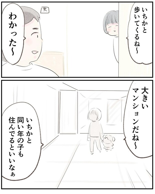 小野さんは夫に声をかけ、マンション内をいちかちゃんと歩いてまわります。