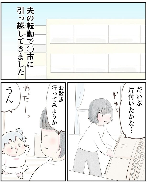 引っ越し作業もひと段落ついたころ、小野さんは2歳の娘のいちかちゃんとお散歩に行くことにします。