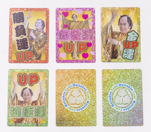 【内容】マツケンのオリジナル開運カード。運気を引き寄せるかもしれないパワフルなアイテム。全6種、どれが当たるかは運次第。
