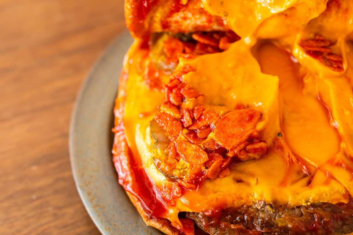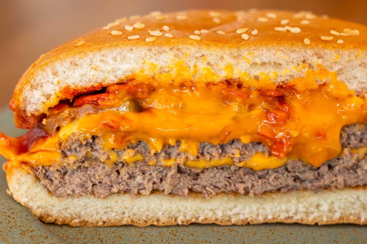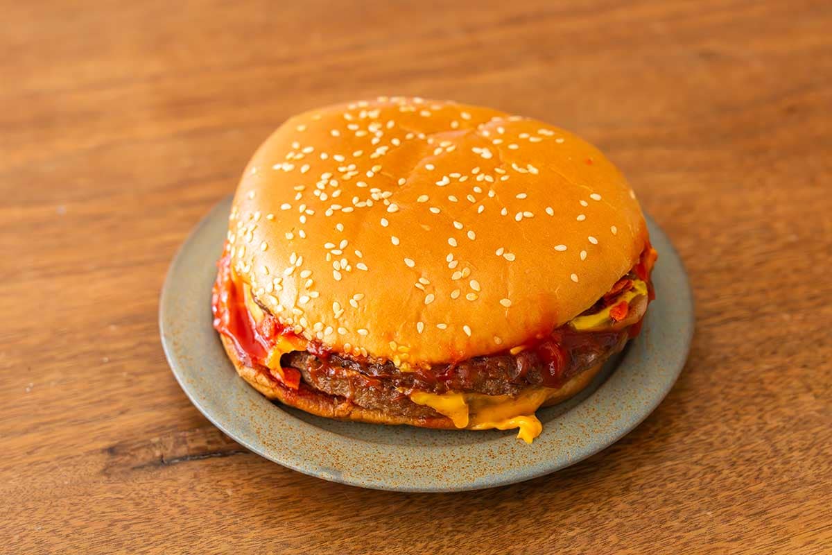 次は断面チェック。ビーフパティが2枚サンドされているので、ボリューム感がスゴいです。