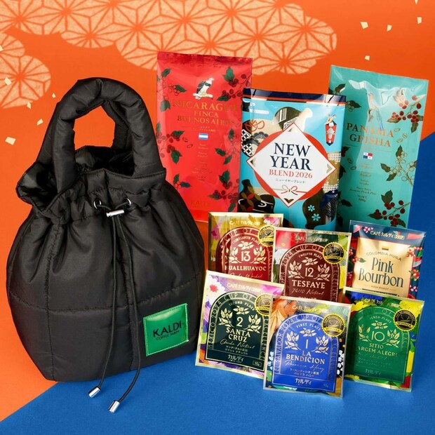 カルディコーヒーファームは11月19日から、公式アプリとオンラインストアで「食品福袋」(税込5,500円)の抽選申し込みの受付を開始する。