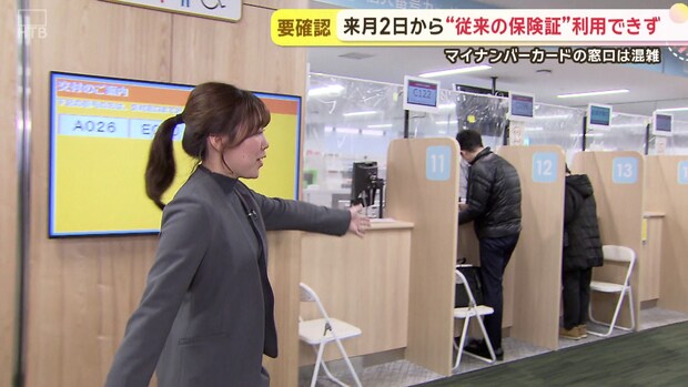 裏葵記者「区役所の窓口ではマイナンバーカードの手続きで多くの人が訪れています」。