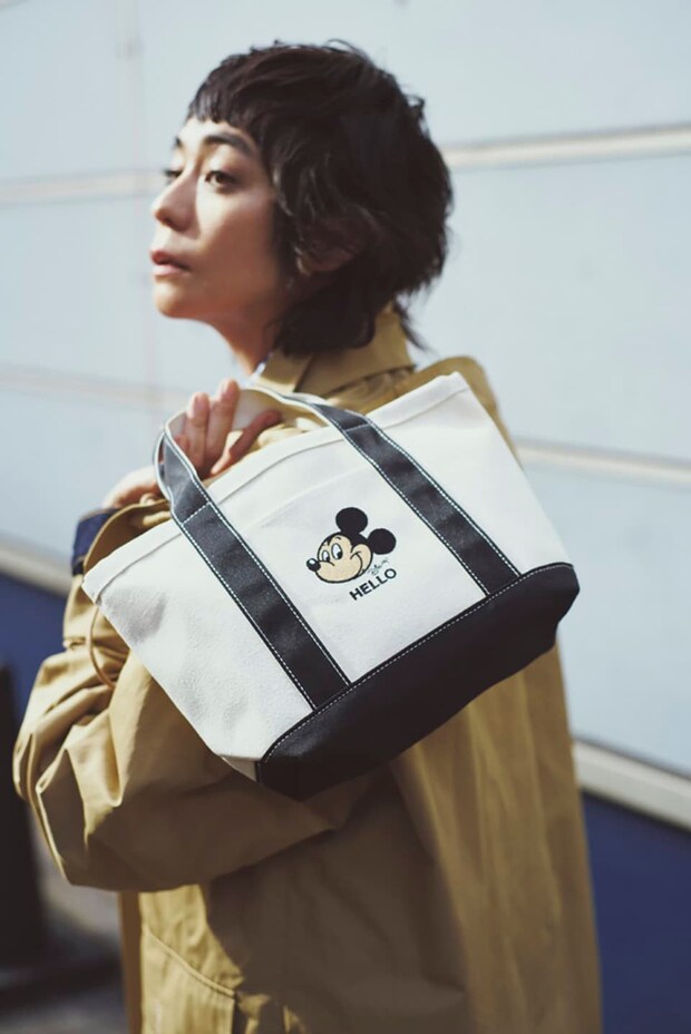 シンゾーンのロゴとミッキーマウスの刺繍が施された高見え必至のキャンバス調トート。どちらを表にしても洒落て見える♡