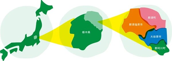 那須エリアは、栃木県北東部に広がる那須野が原一帯を指し、那須町・那須塩原市・大田原市・那珂川町の4市町から構成されている。
