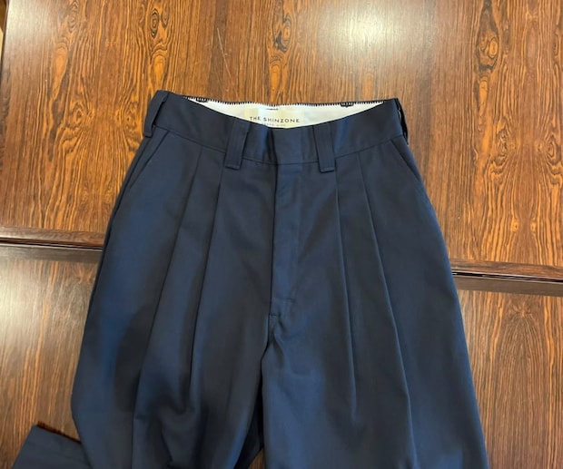 トムボーイパンツは、【シンゾーン】の定番ボトムスのひとつ。スケーターパンツをイメージしているらしいのですが、とにかくシルエットが絶妙。ツータックなので腰まわりに程よくボリュームがあるのですが、裾に向かってストンと落ちるストレートシルエットに。しかも筆者大好物のハイウエストも相まって、めっちゃ脚が長く見えるんです!