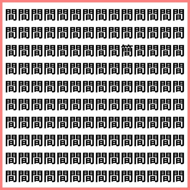たくさんの「間」の中に、1文字だけ違う漢字が混ざっています。