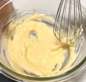 【ポイント】卵を最初に入れると、もし殻が入ってしまったときに取り出しやすくなります。