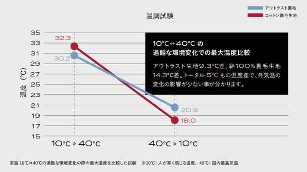 温調テストでは、アウトラスト裏毛はコットン裏毛生地と比べると、温度変化の影響を5℃も和らげるという報告があります。寒いときはアウトラストのマイクロカプセルが貯蓄した熱を放出、暑いときは余分な熱をぐんぐん吸収して肌温度を整えてくれる仕組みになっているそう。冷房の効いた夏の夜も含めて、オールシーズンで着用できるように計算済み。こんな革新的なスリープウェアがあったなんて知りませんでした!